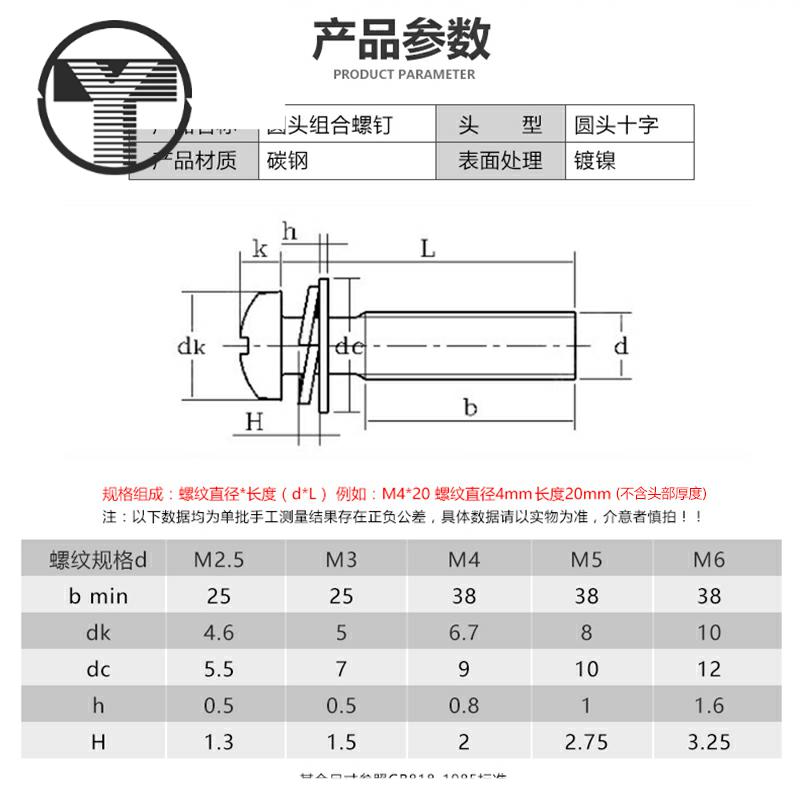 Nickel-plated cross round head three combined screw disc head with cushion triple-combined screw M2M2 5M3M4M5M6