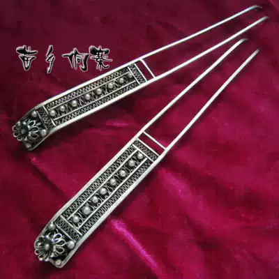 Hair accessories Miao Township Dong Village Guizhou Handmade Miao Silver Old Wrought Silk Double Needle Hairpin Hairpin Alloy