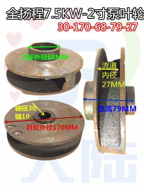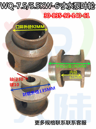 Sewage pump iron impeller non-clogging mud paddle pump water impeller Full head sewage pump impeller shaft diameter 30MM hole
