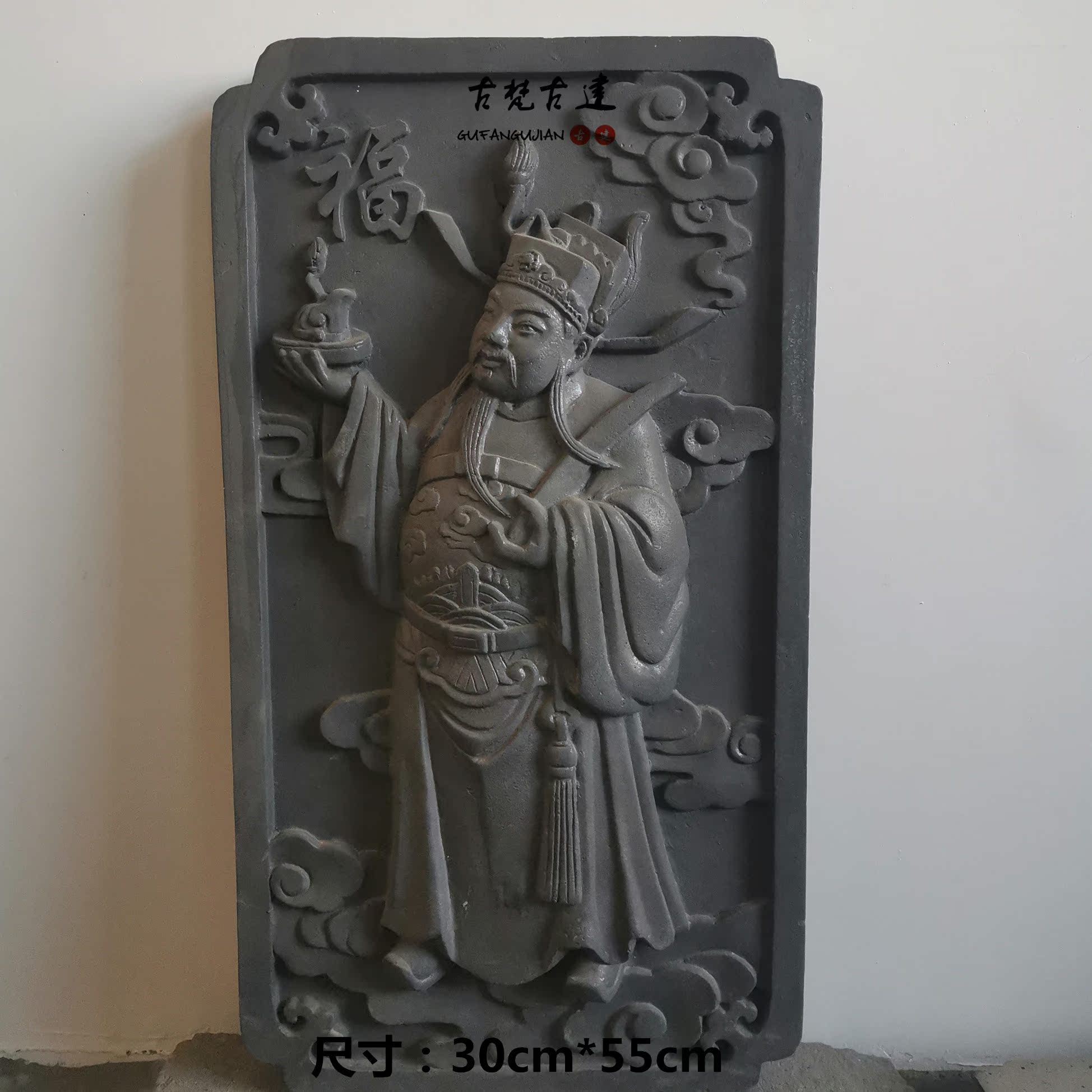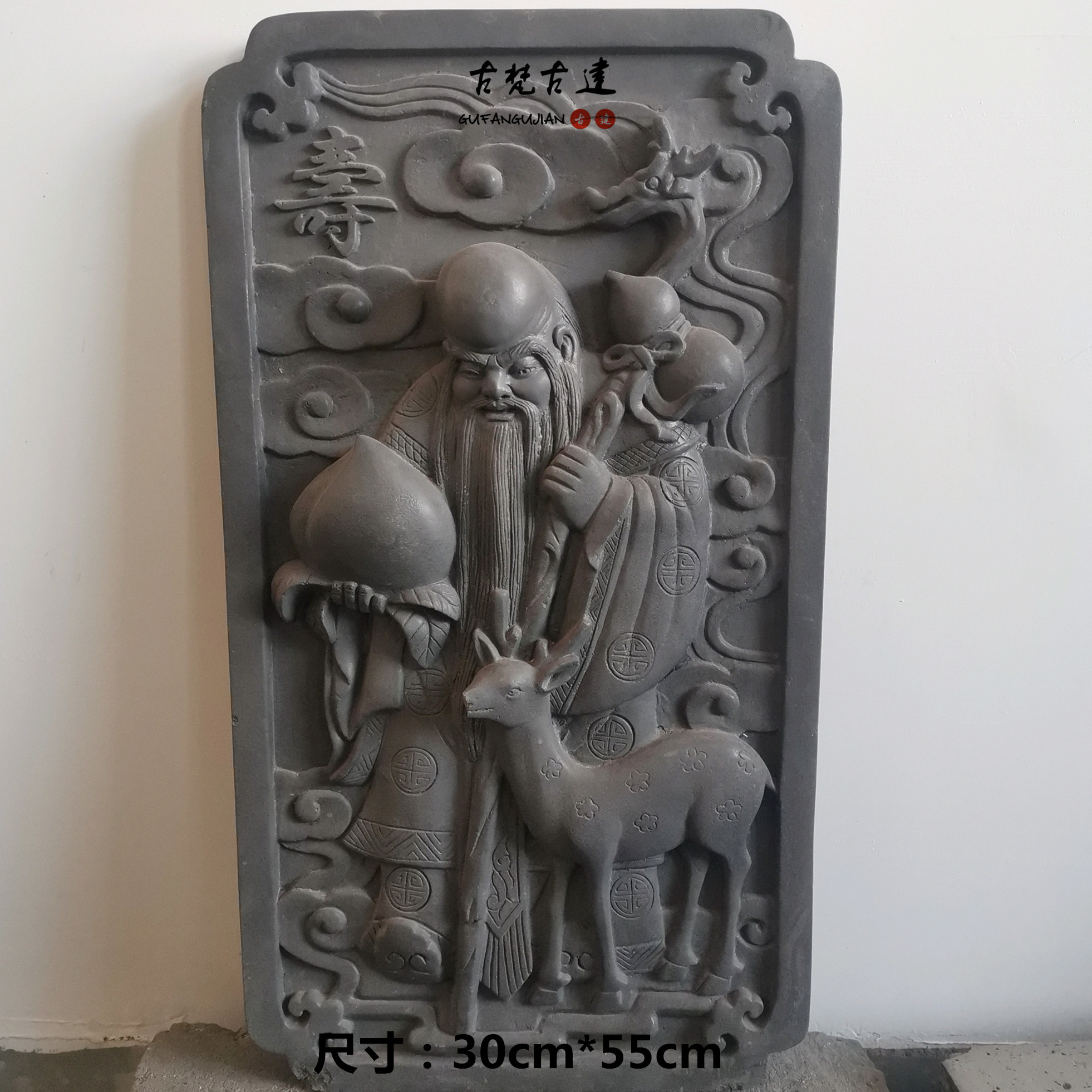 Ancient fan antique brick Courtyard Chinese brick carving Fu Lu Shou Xi Cai Ancient building brick carving Vertical relief Photo wall Shadow wall
