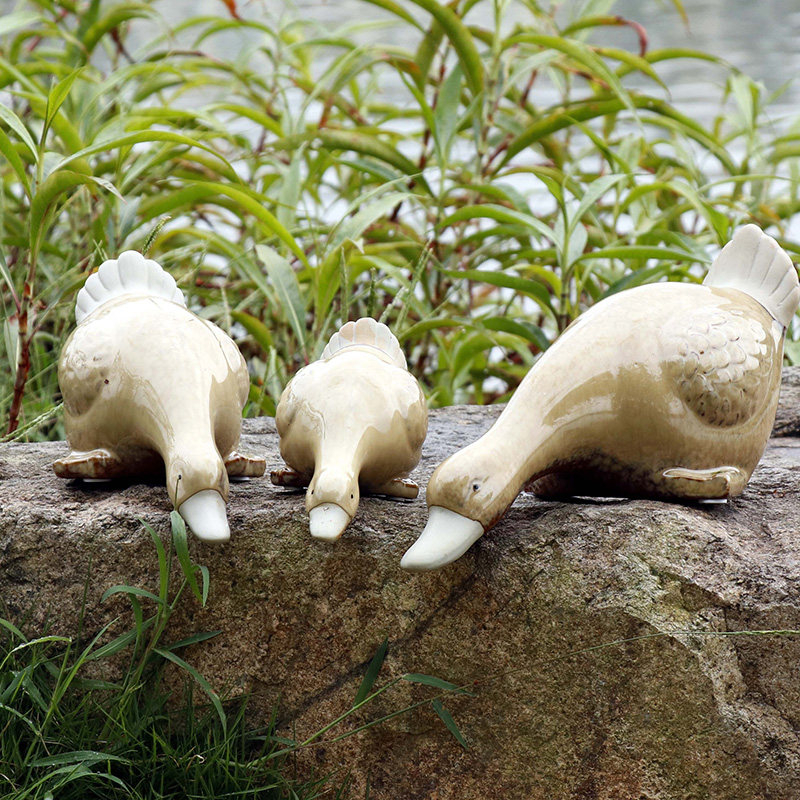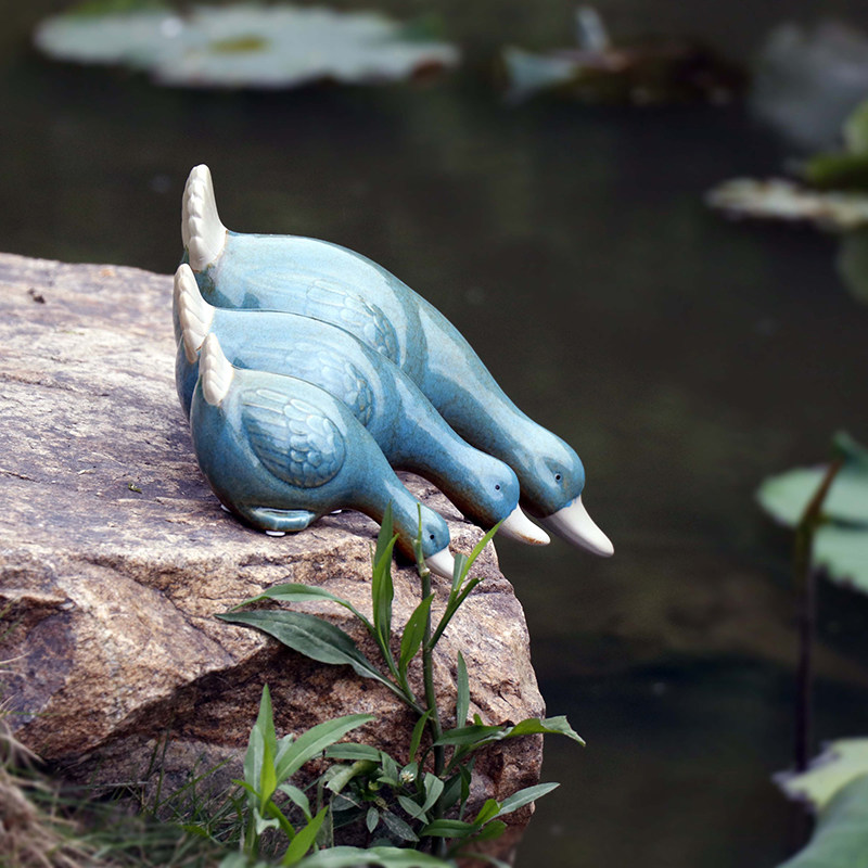 Ceramic Ducks three sets of water cylinder fishpond View Landscape Decorations Garden Fountain Stone Trough Pond Floor Pendulum
