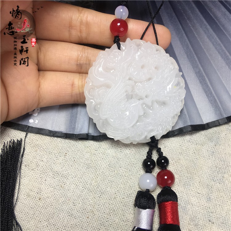 Natural jade white jade dragon wind men's and women's ancient style jade pendant tassel pendant waist pendant waist hanging accessories pressing lapel forbidden step