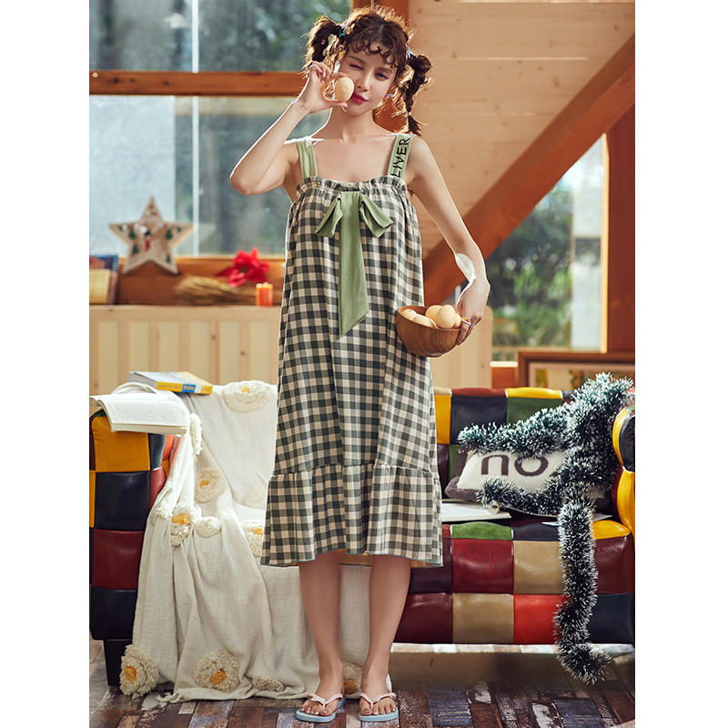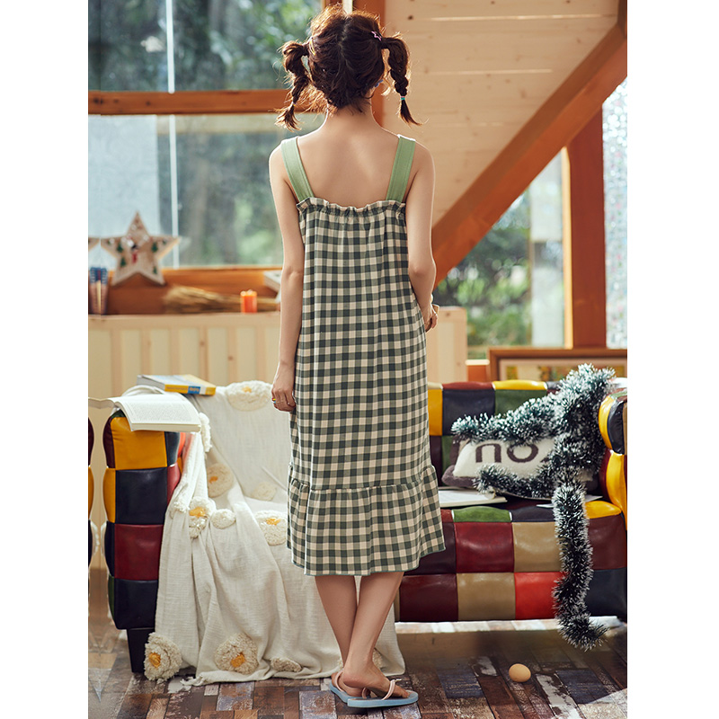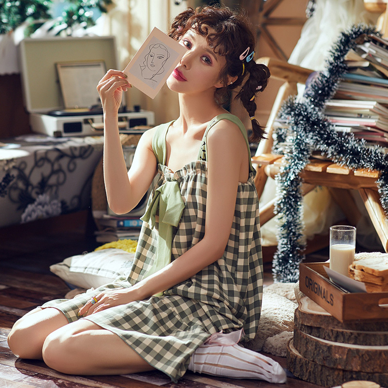 Suspender night dress women's summer pajamas Cotton with chest pad thin Western dress summer loose large size two-piece suit