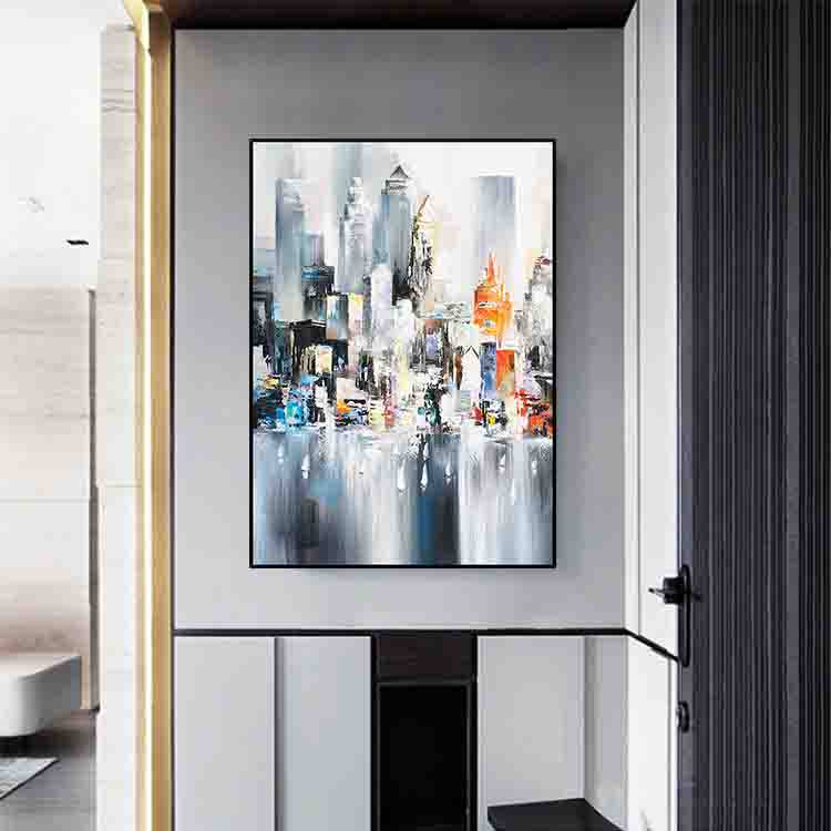 Modern simple impression City Abstract decorative painting Hand-painted oil painting Entrance aisle Hanging painting Capital of New York