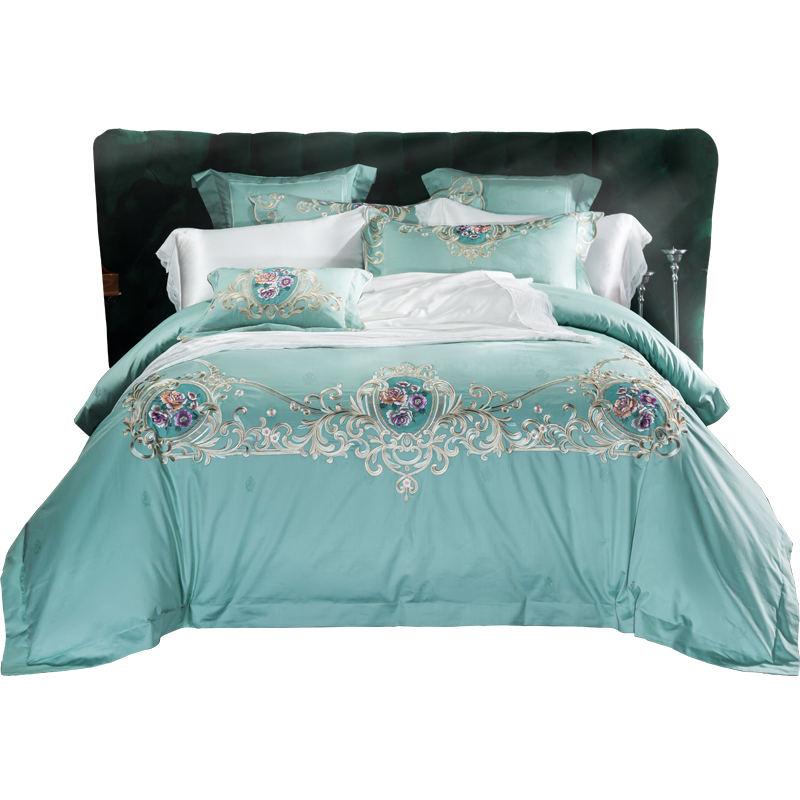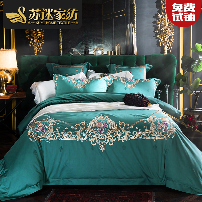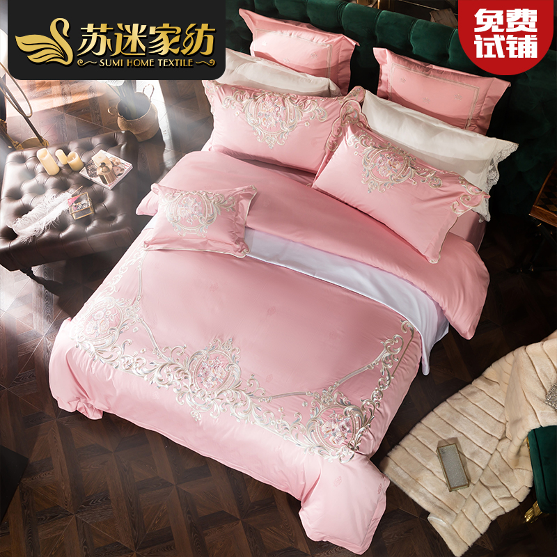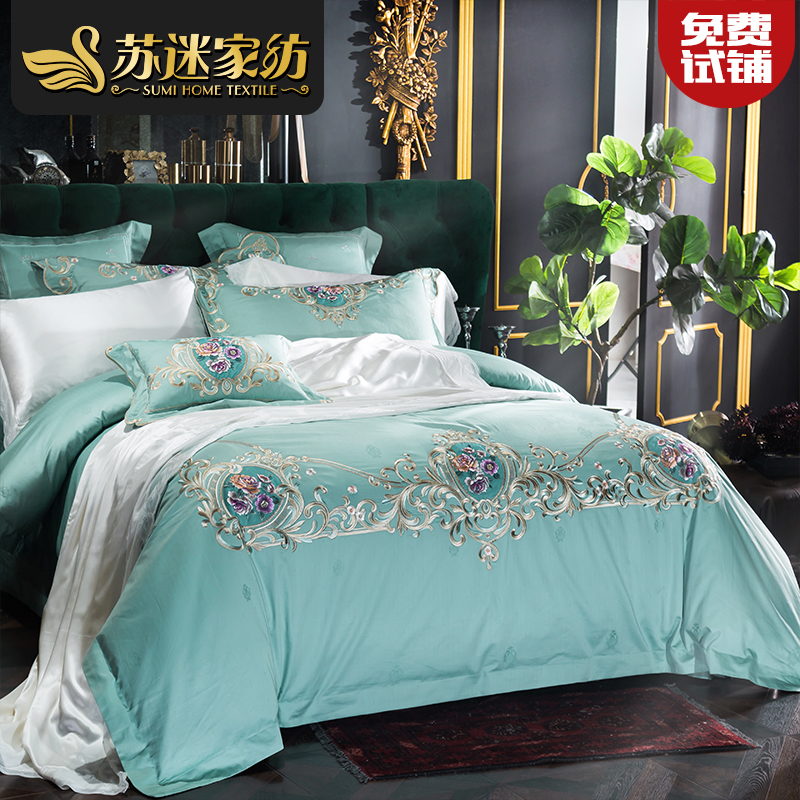 Su fan Home Textile New Chinese high-end flower Heavy work Embroidery Bed supplies 80 long suede cotton All cotton Four sets