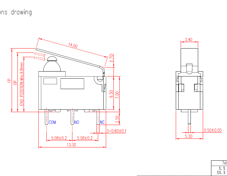 Taiwan ZIPPY waterproof micro switch limit switch pin 3A waterproof belt handle switch charging gun switch DW2