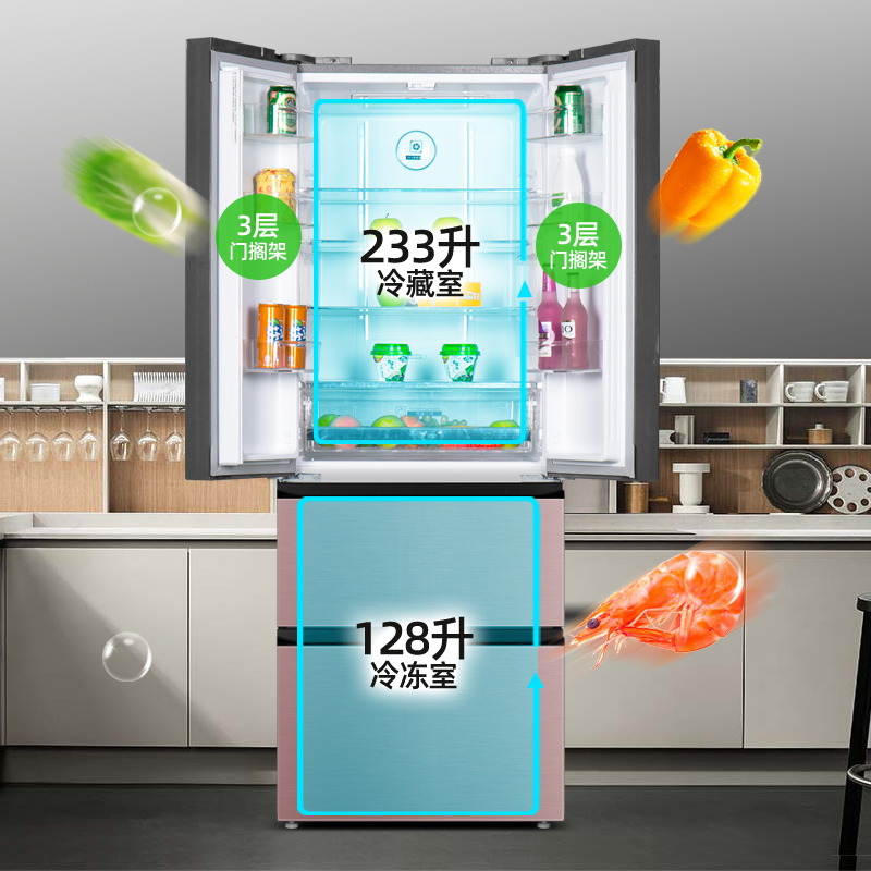 New Fly BCD-361 Lil Style Multidoor Fridge Home Frequency Conversion Energy Saving Three Doors Four Doors Air-cooled Frost-free Refrigerator
