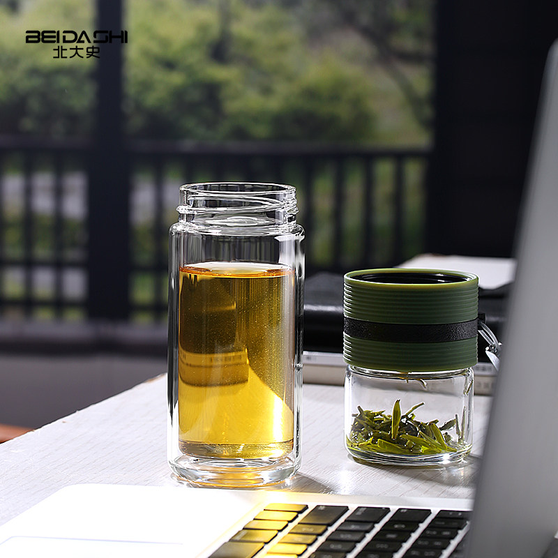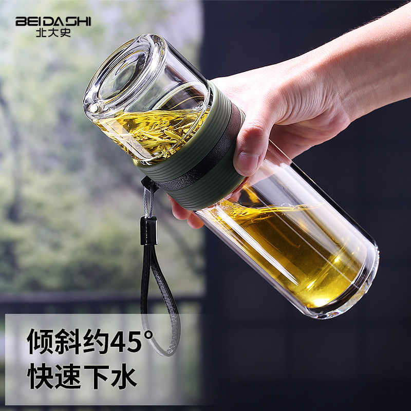 Peking University history glass tea cup tea water separation out portable double layer anti-bronzing cup male and female vehicle water glass