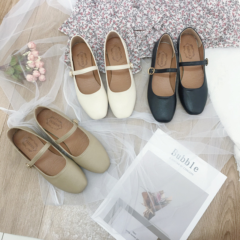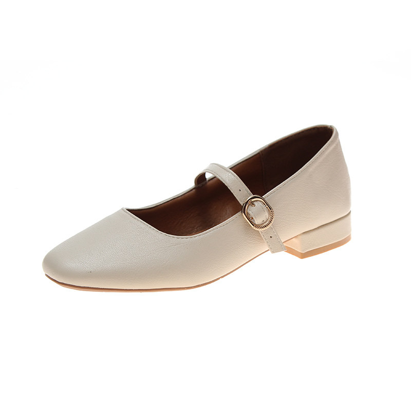 Retro Small Square Toe Buckle White Fairy Shallow Mouth Mary Jane Granny Shoes Women's Flat Bottom Internet Celebrity Low Heel All-Match Models