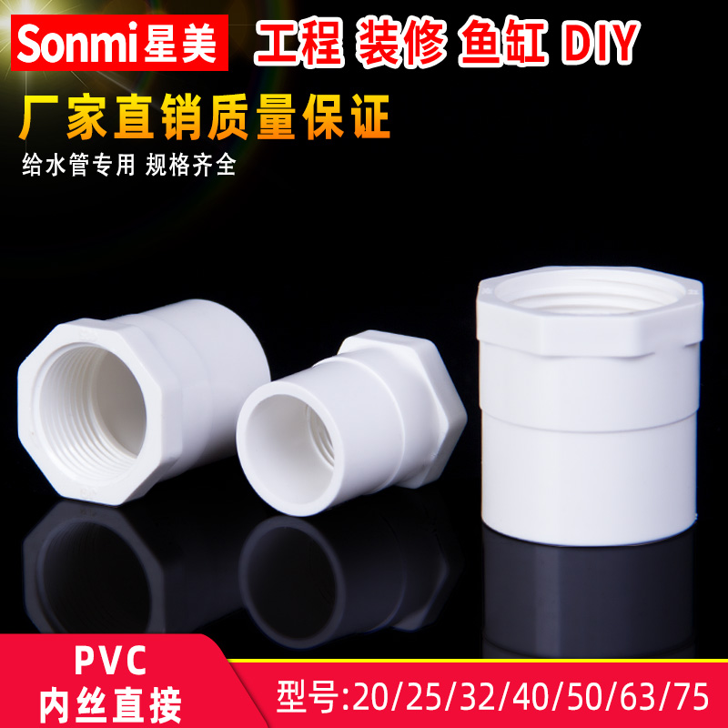 PVC inner wire direct straight-through connector faucet live connection water supply pipe fittings 4 points 6 points 20 25 32 50