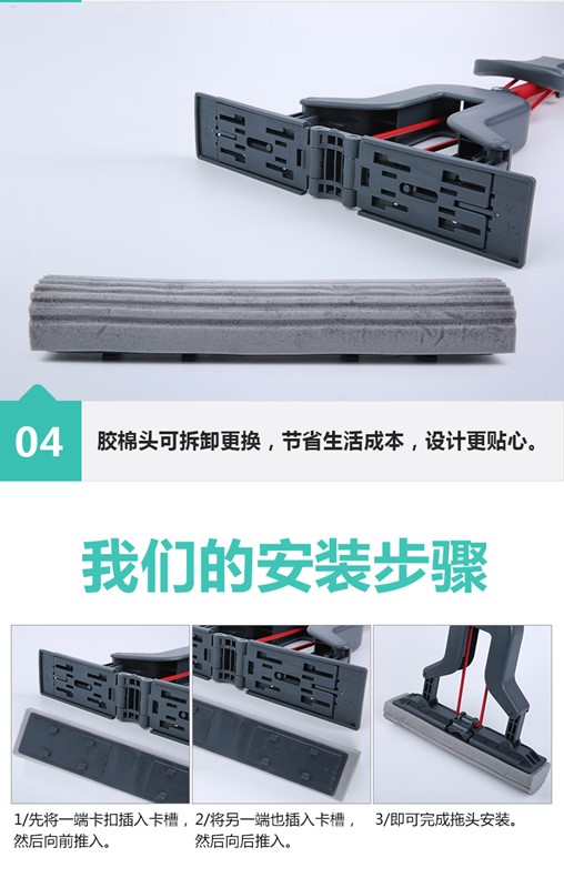 German-Australian classic strong absorbent sponge head hand-free cotton mop replacement folded in half to squeeze water mop head