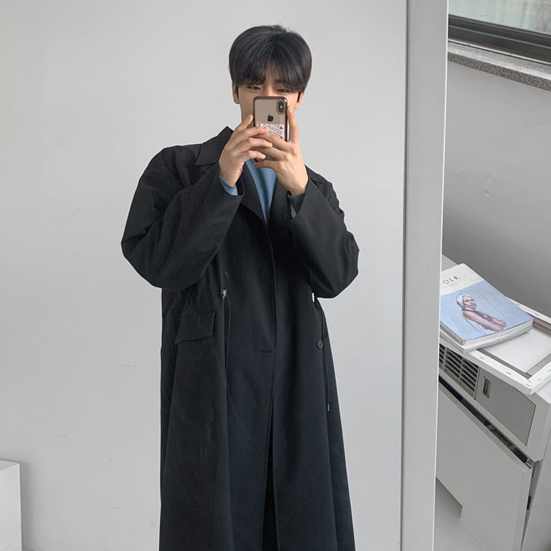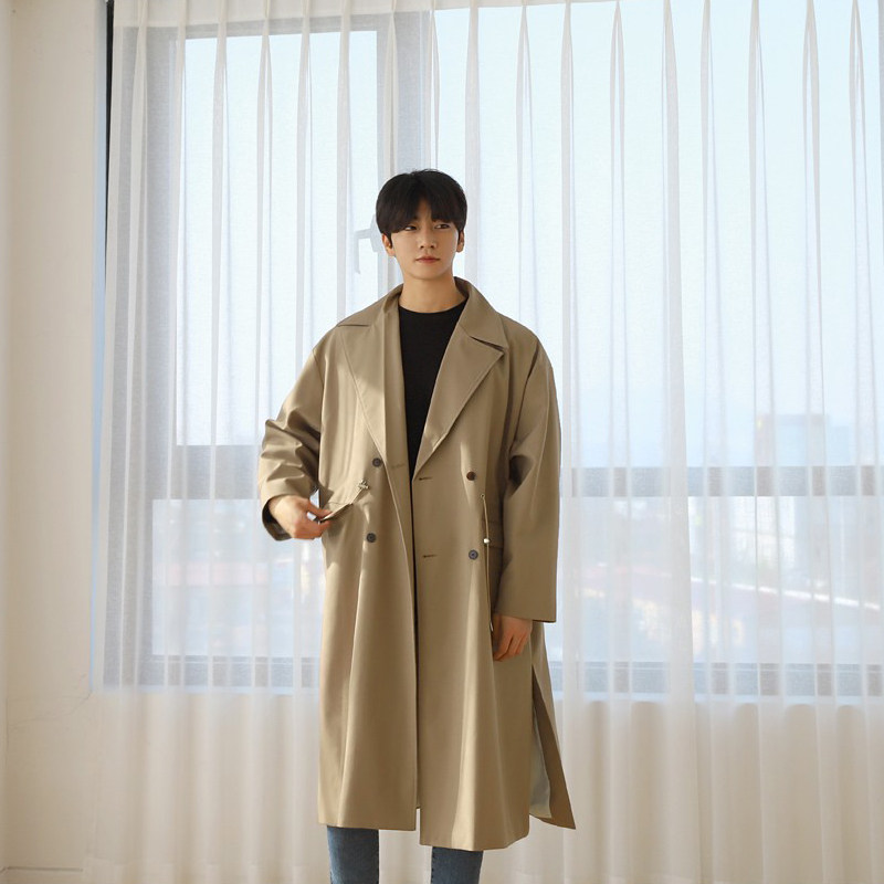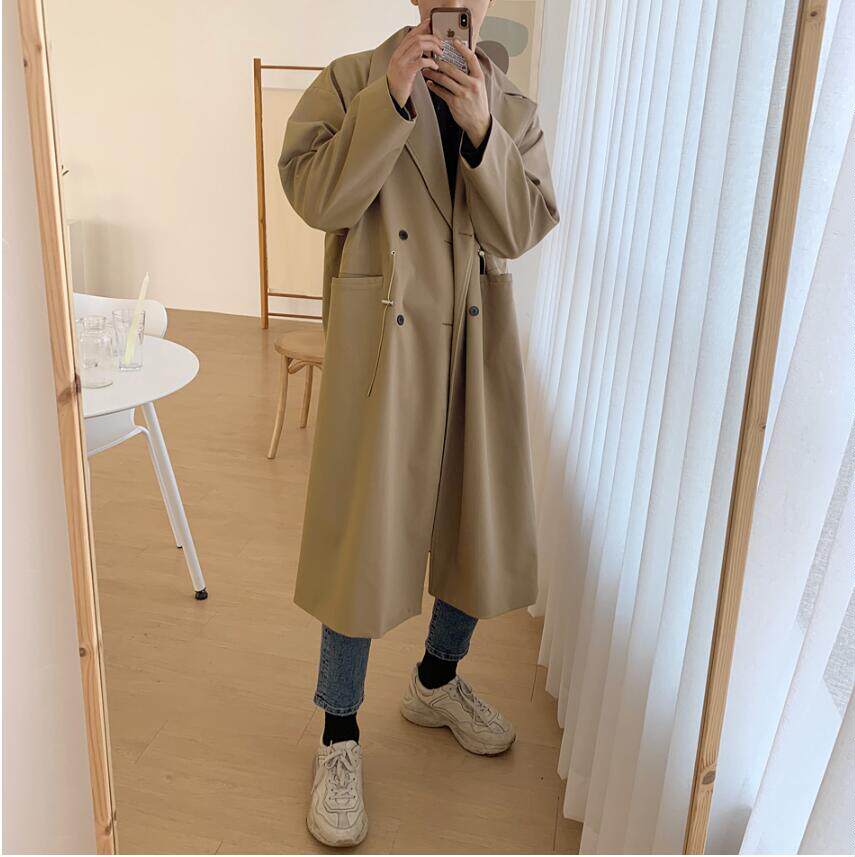 Windweaters Long version handsome with knee-top trendy Korean version 2021 new autumn pop great coat men Inn wind jacket