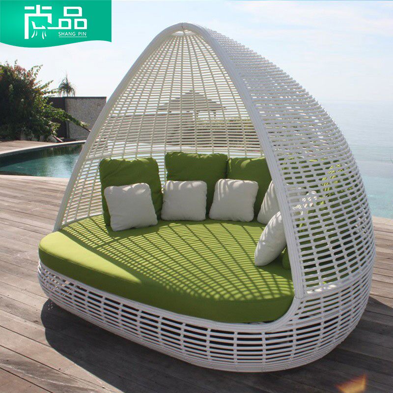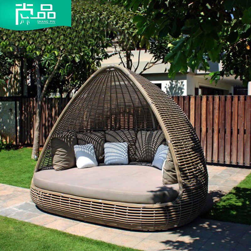 Outdoor rattan woven bed open-air garden sofa net red hammock creative bird's nest furniture leisure beach swimming pool