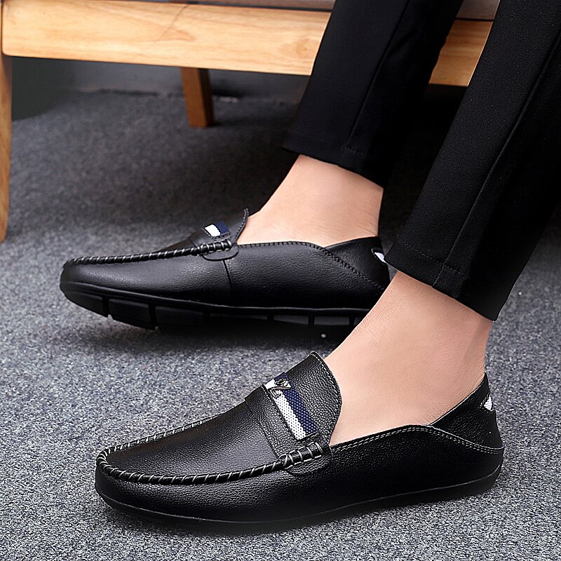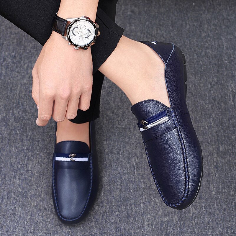 Autumn breathable men's white beanie shoes men's leather wild soft bottom autumn lazy one pedal casual leather shoes tide