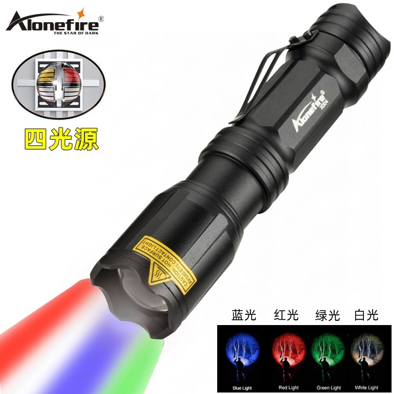 WRGB four-color light source flashlight, strong light, long-range white light, red light, blue light, green light, photography fill light, camping fluorescent stick