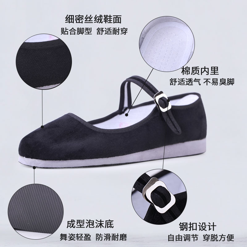 Jiaozhou Yangko Shoes Ethnic Folk Dance Shoes Northeast Yangko Practice Shoes Adult Examination Examination Velvet Heel Shoes 1004