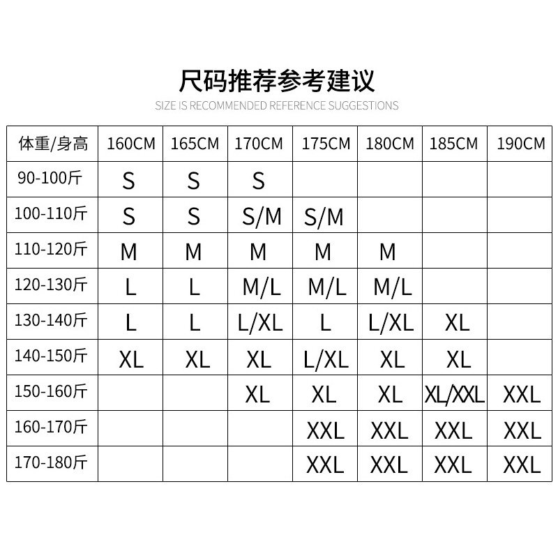 XS (25-40 catty) S (40-60 catty) M (65-100 catty) L (100-130 catty) XL (130-145 catty) XXL
