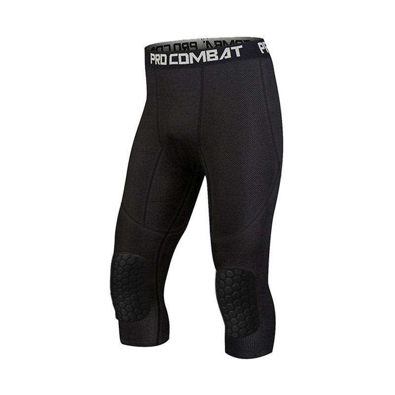 Basketball Tight Pants Kneecap Kneecap With Seven Pants Equipped Honeycomb Anticollister With Leg Guard Pants Socks Professional Training Inner Lap Pants