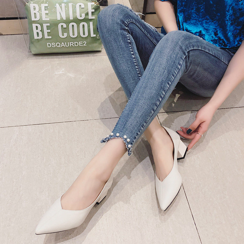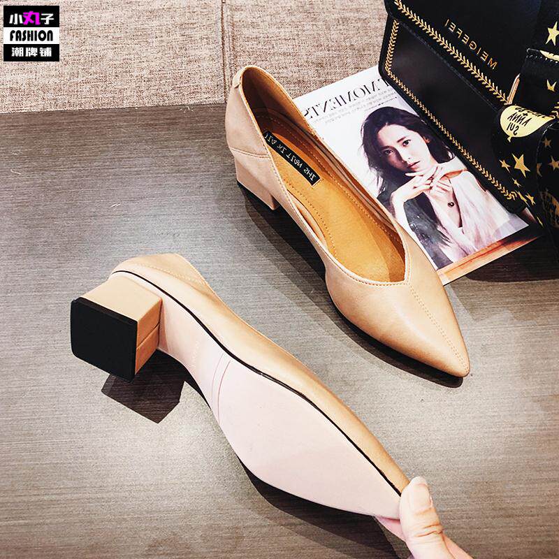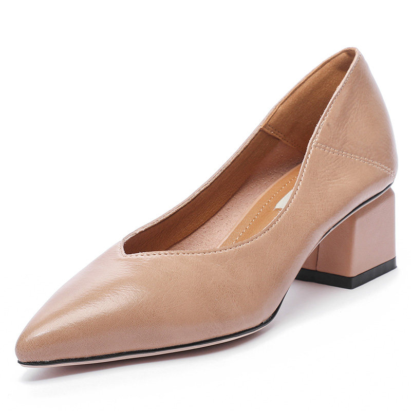 Europe station 2022 new coarse heel single shoes female French style high heel grandma shoes soft leather pointed shoes for work shoes