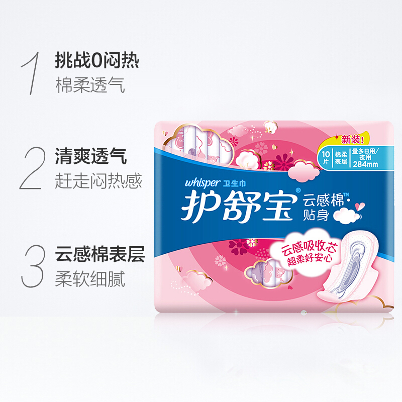 Protective shubao cloud sensation cotton for many days with 284mm50 slices of sanitary cotton wool soft and breathable aunt towel