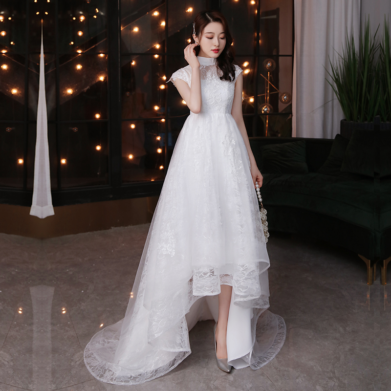 Light wedding dress 2020 new bridal pregnant woman large size minimalist with high waist surrogacy front short rear long trailing sensuo super fairy