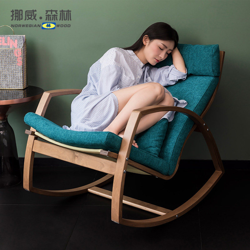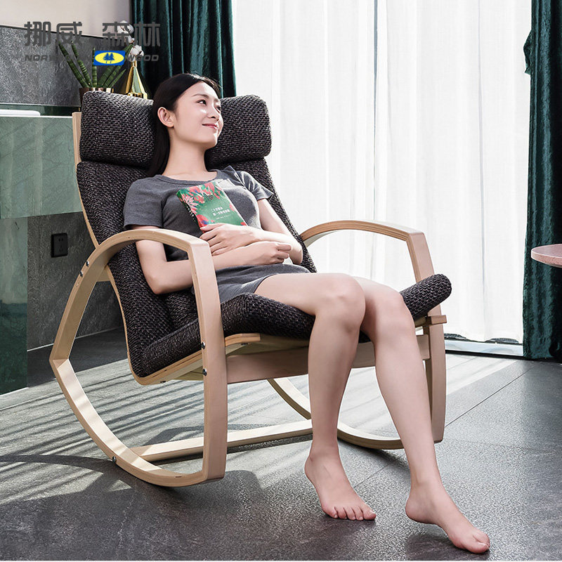 Nordic solid wood rocking chair curved wood leisure chair reclining chair creative lazy sofa chair nap chair balcony leisure chair