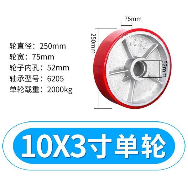 Ultra-heavy castors cast iron core PU single wheels 4 inch 5 inch 6 inch 8 inch 10 12 inch flat edge load wheel wheel