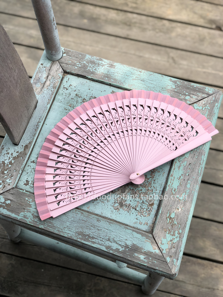 Anita wooden fan custom retro folding fan dance Chinese wind summer rocking fan small dolphin tourism wood fan