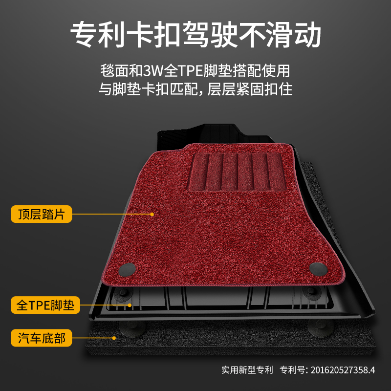 3W thickened Meinis carpet surface special car special pedals are environmentally friendly and comfortable, good foot feeling, suitable for 3W TPE foot pads