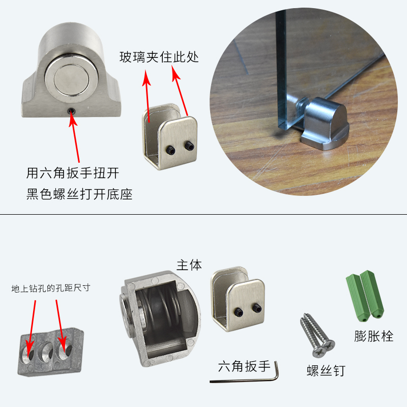 Xibexin glass door suction partition door touch door block free punching strong magnetic bathroom floor suction anti-collision door suction door blocking door top