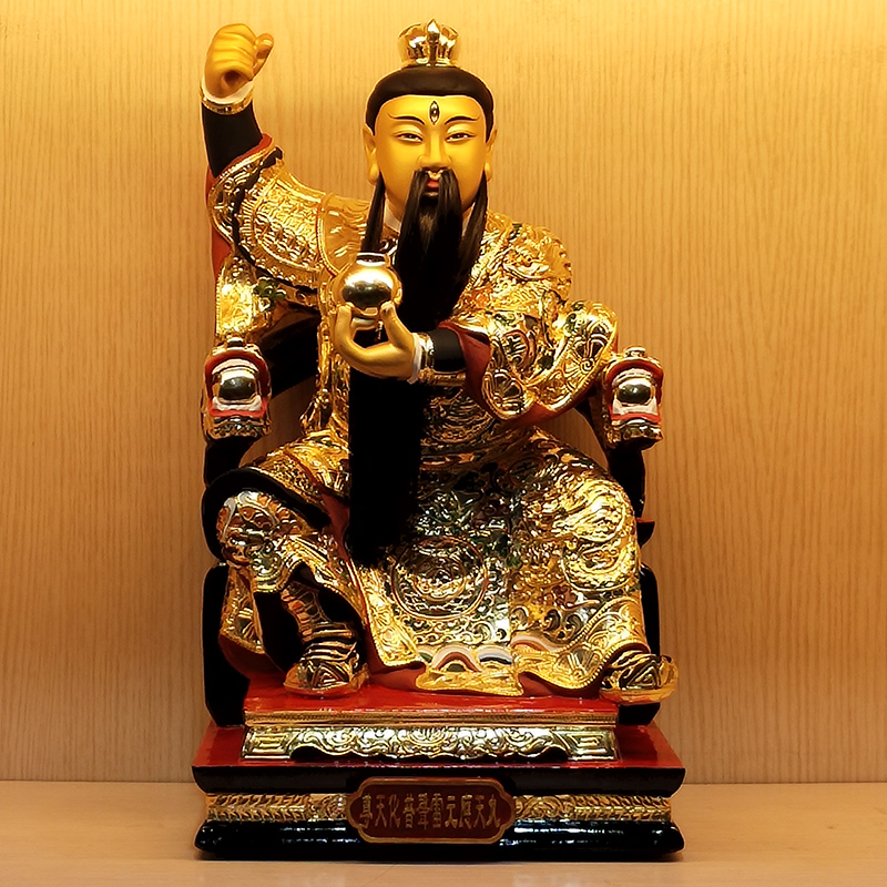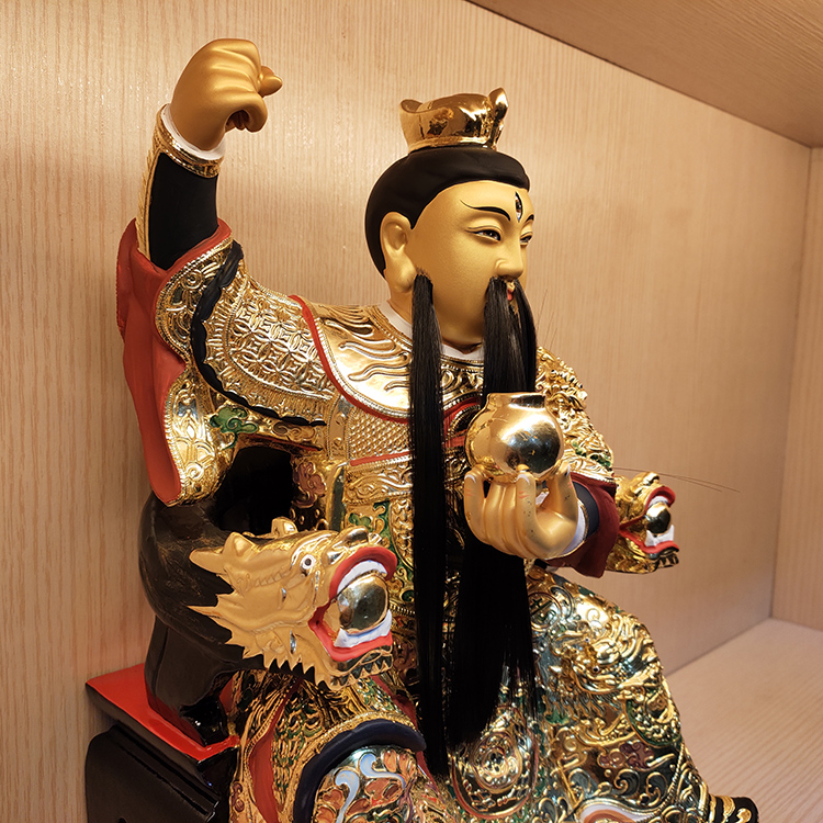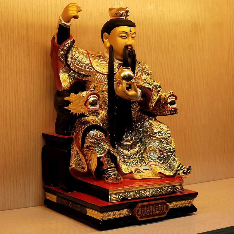 Taoist Lei Gong Thunder God Lei Zu Xiang Camphor Wood Carving Nine Heavens Ying Yuan Thunder PuHua Tianzun Painted God Statue Immortal Emperor