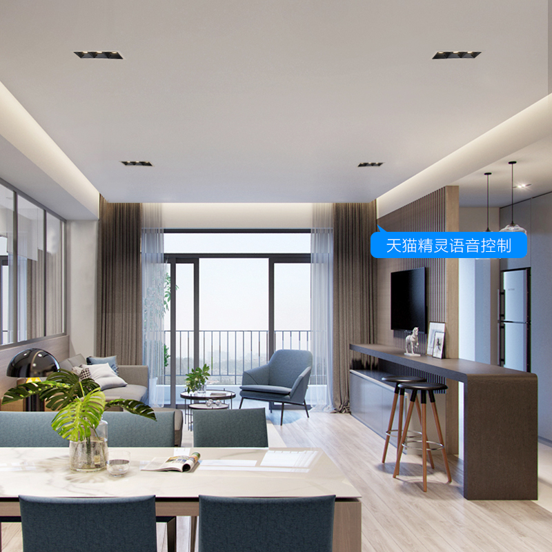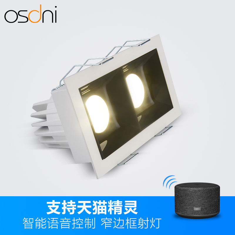 Home cob spotlight living room led embedded ceiling light square double head downlight without main light Tmall Genie Smart