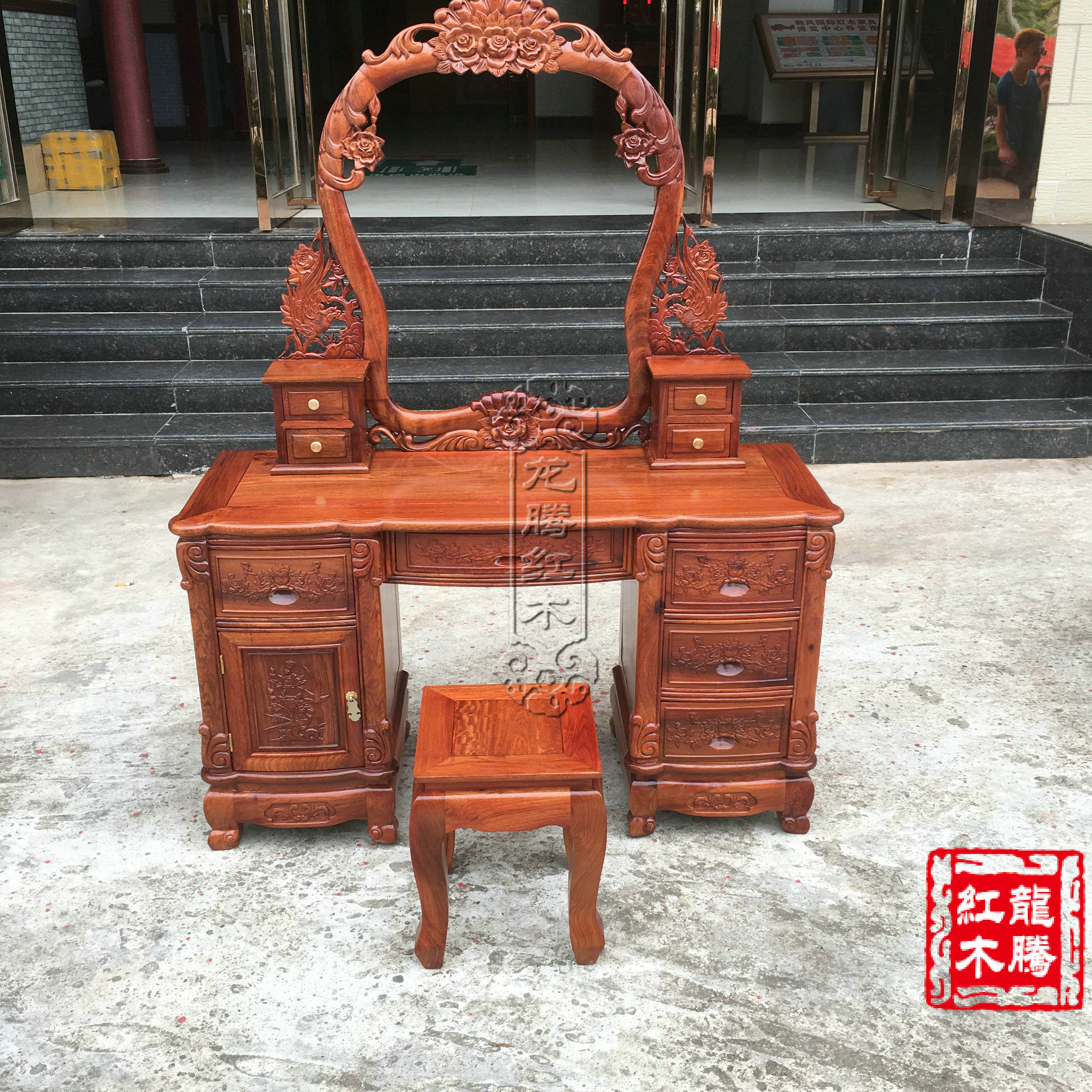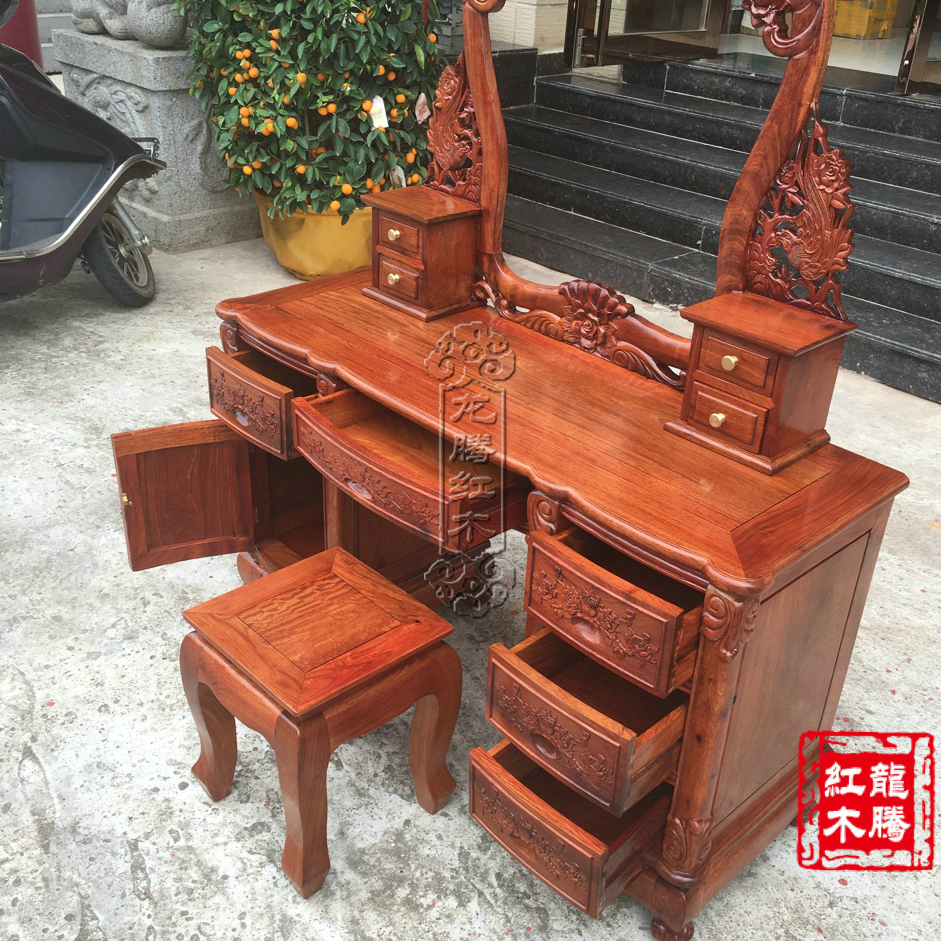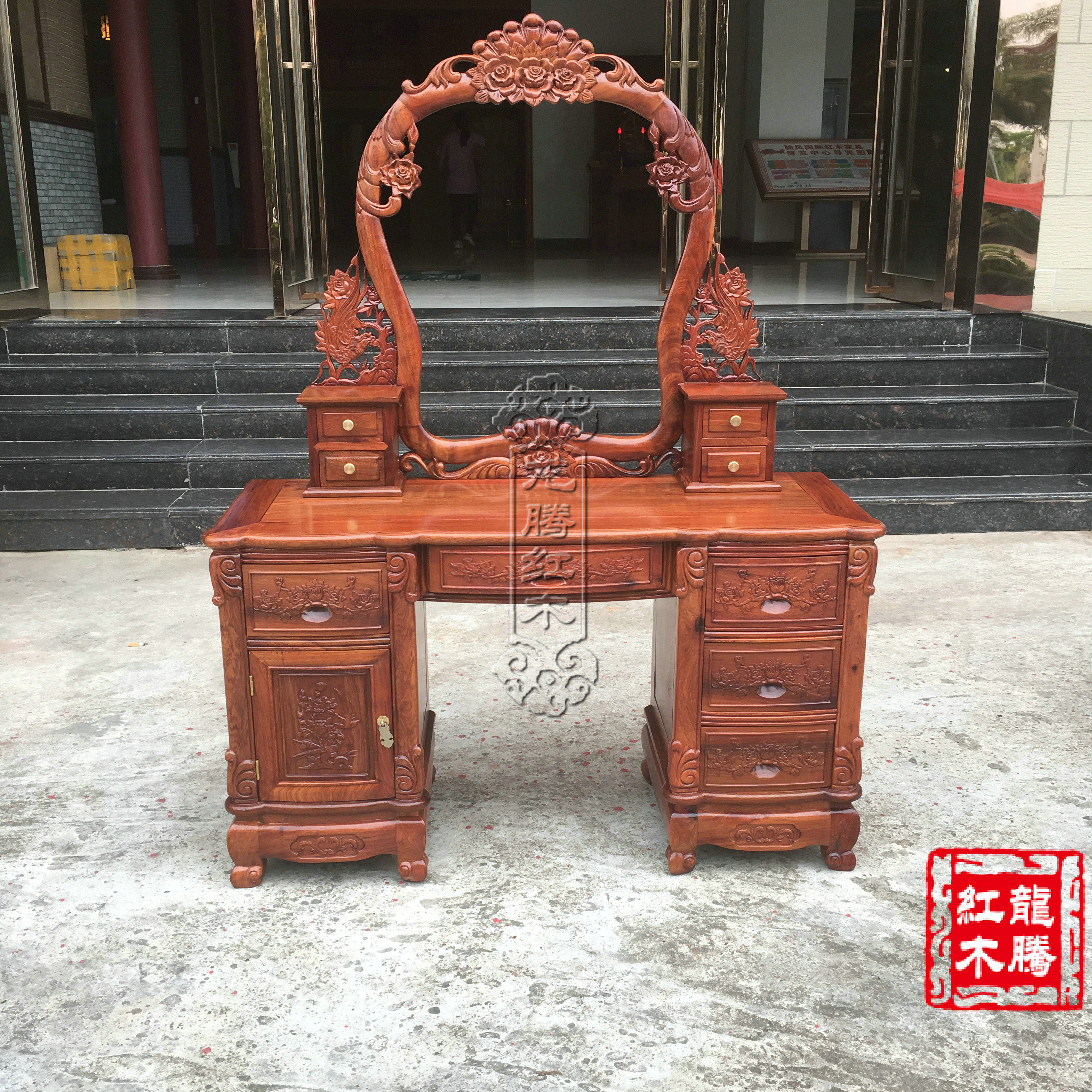 Mahogany furniture boutique Burmese rosewood dresser Big fruit rosewood European style rose makeup table