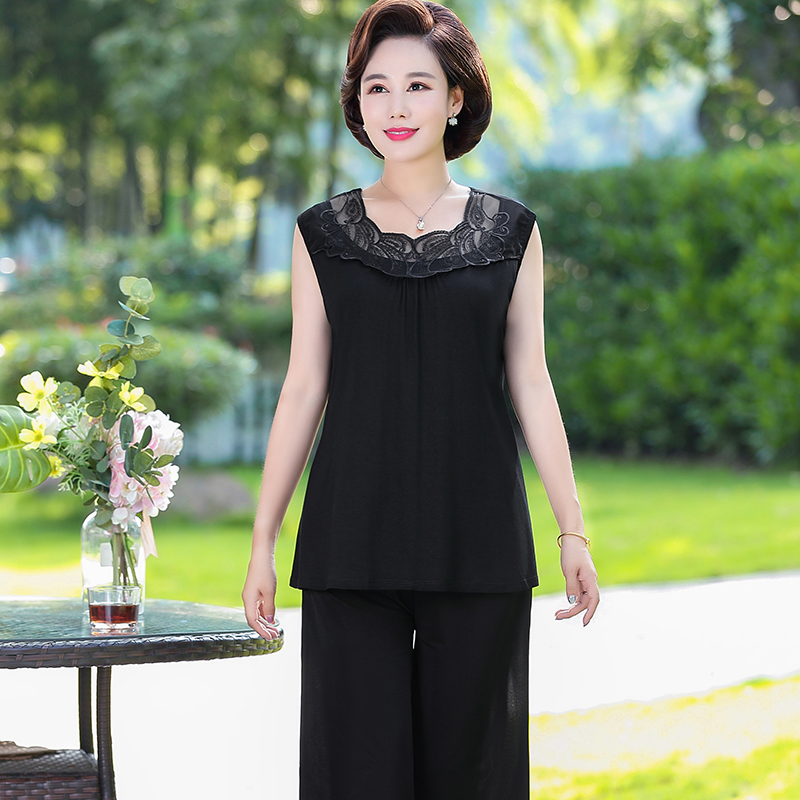 Middle aged sleeveless vest female summer pure cotton loose plus fertilizer to increase breathable and thin Modele lace sidemother