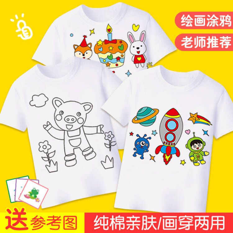Children diyT-shirt white zstained short sleeve graffiti painting Painted Kindergarten Class holiday parent-child handmade