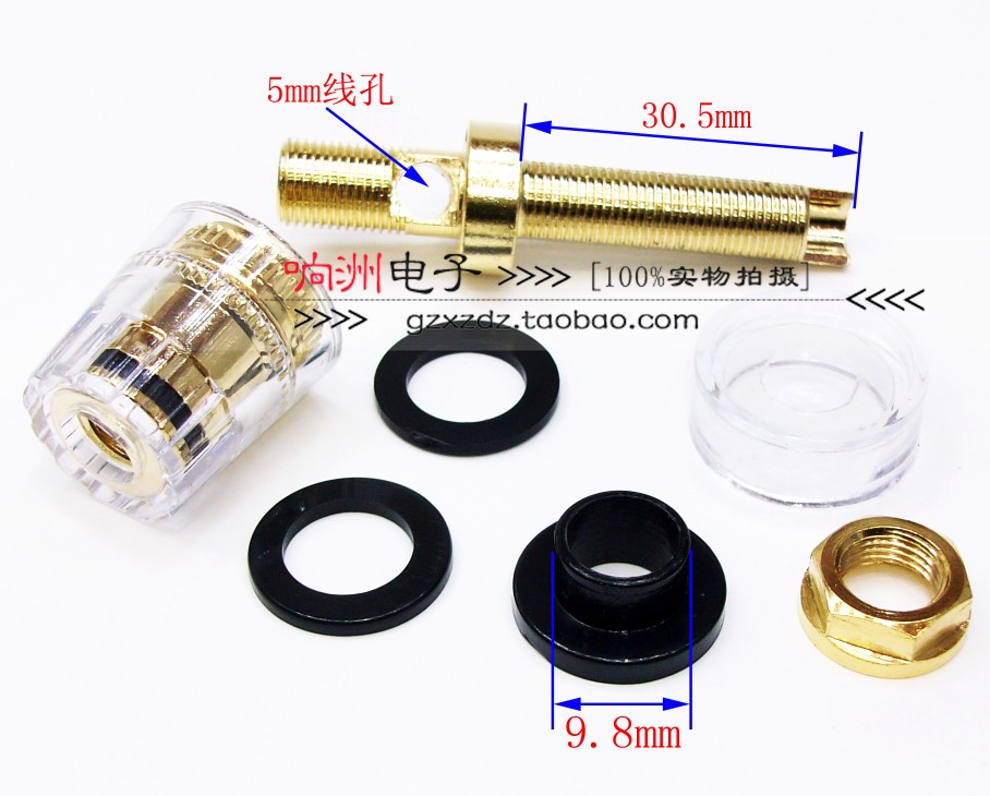 Crystal sound speaker power junction column pure copper large current plated gold - plated 4MM banana plug socket medium and long