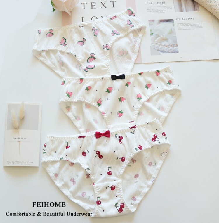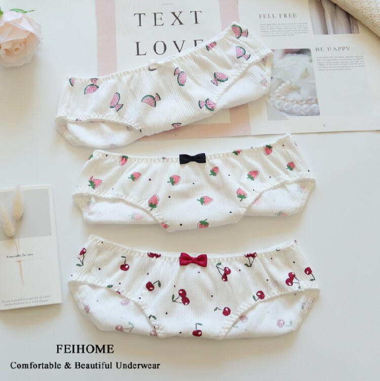 N461 Comfortable Women's Low Waist Threaded Cotton Cute Fruit Bunny Student Girls Underwear M L XL - Taobao