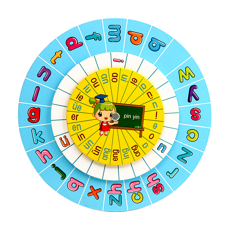 Kindergarten First Grade Combined Pinyin Parquet Read Turntable Teaching Aids Wooden Children Learning Cognition Early Education Puzzle Toys