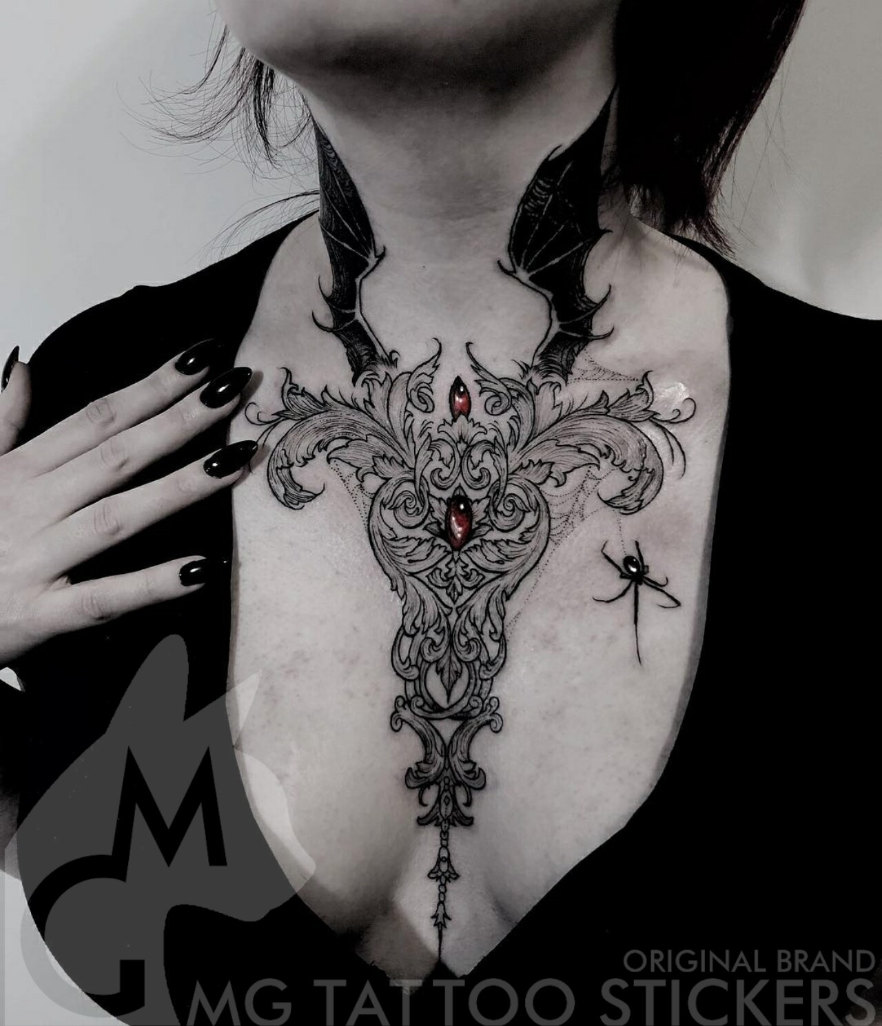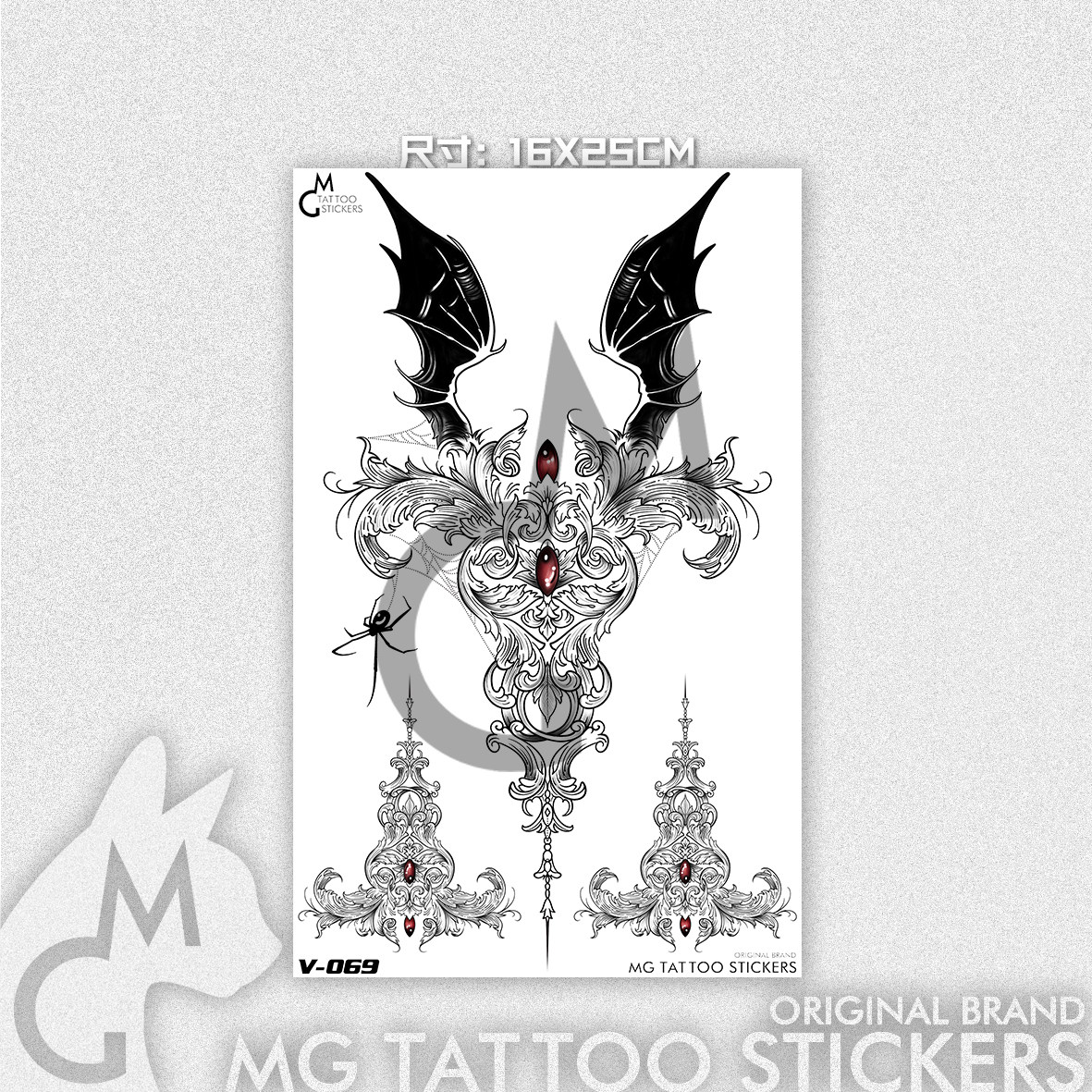 MG TATOO Inlan dark black wind ruby devil Devil Wings Retro Totem Pendant Flowers Chest Tattooed Stickers