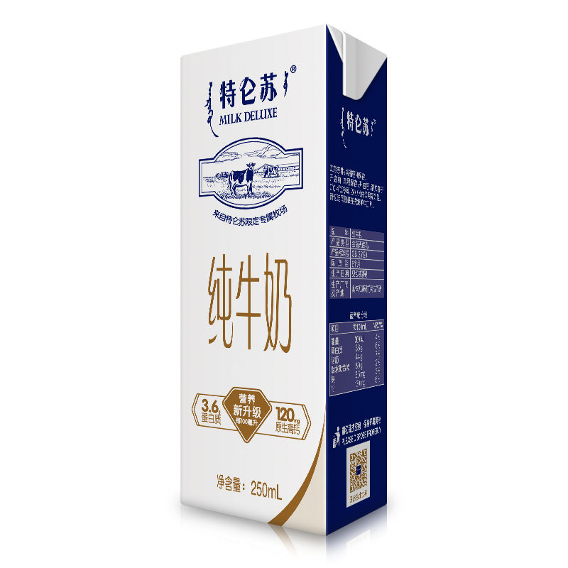New Mengniu Trensu pure milk slim pack 250ml*12 boxes of students and children's breakfast milk wholesale