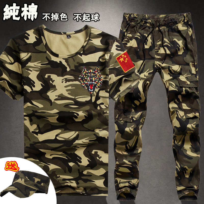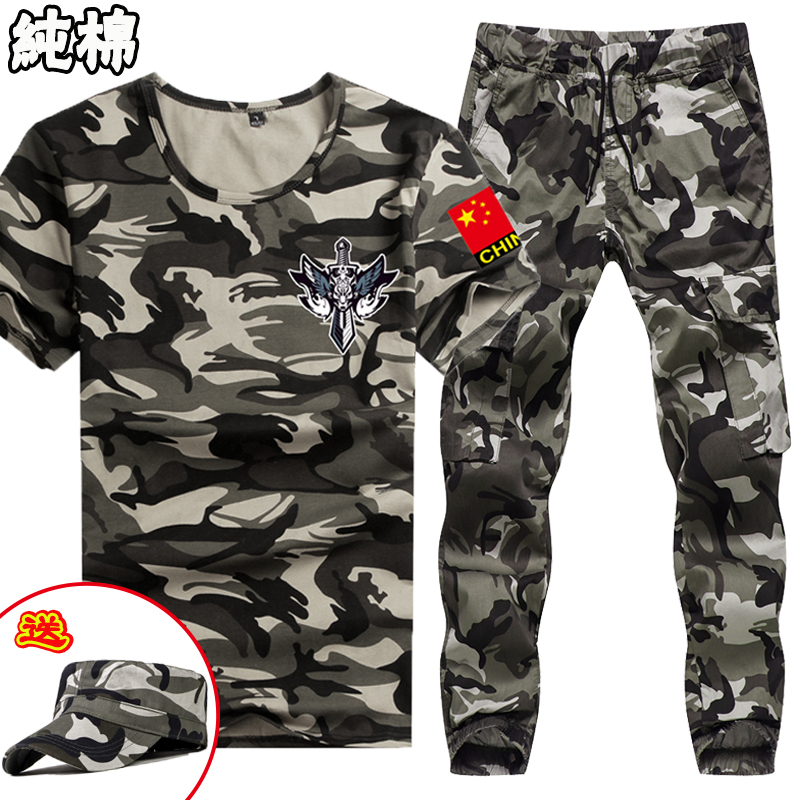 Summer Thin men's army meme ice silk short sleeve sports casual military training camouflak suit pure cotton male wear-wear tooling