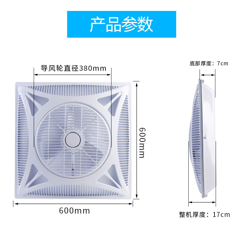 Remote control 600 * 600mm integrated ceiling fan embedded plasterboard ceiling suction-top electric fan with commercial