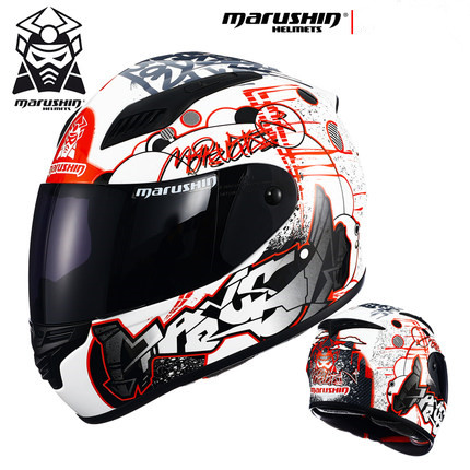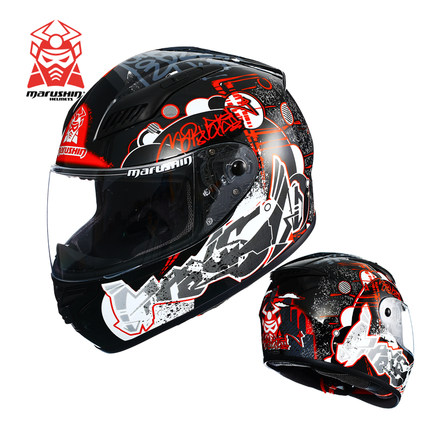 Special edition of red and blue and white transparent film red and blue and white black black lens black and red graffiti transparent film black and red graffiti black helmet with V8S Bluetooth headset with annotated color head