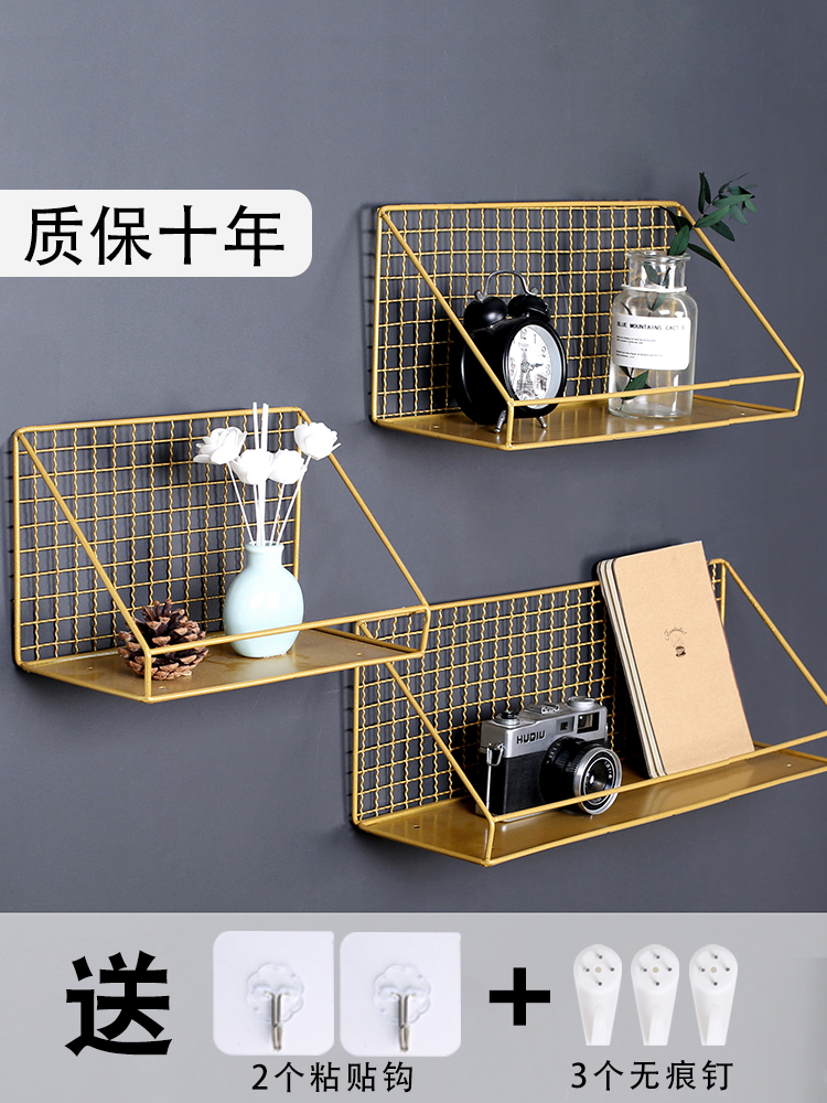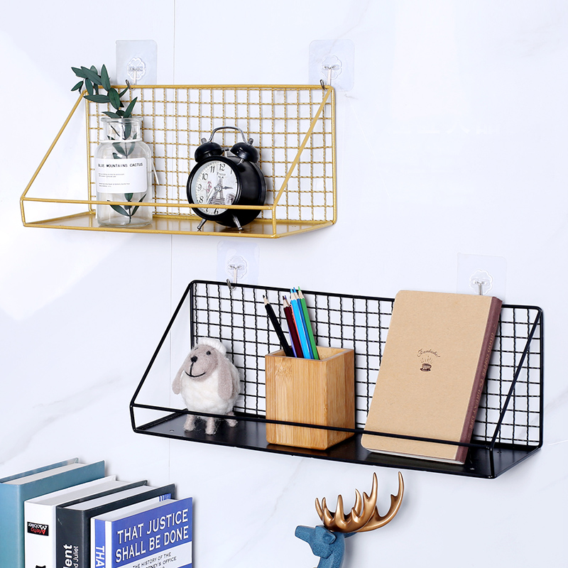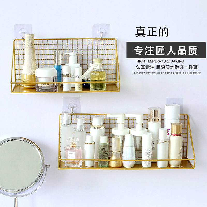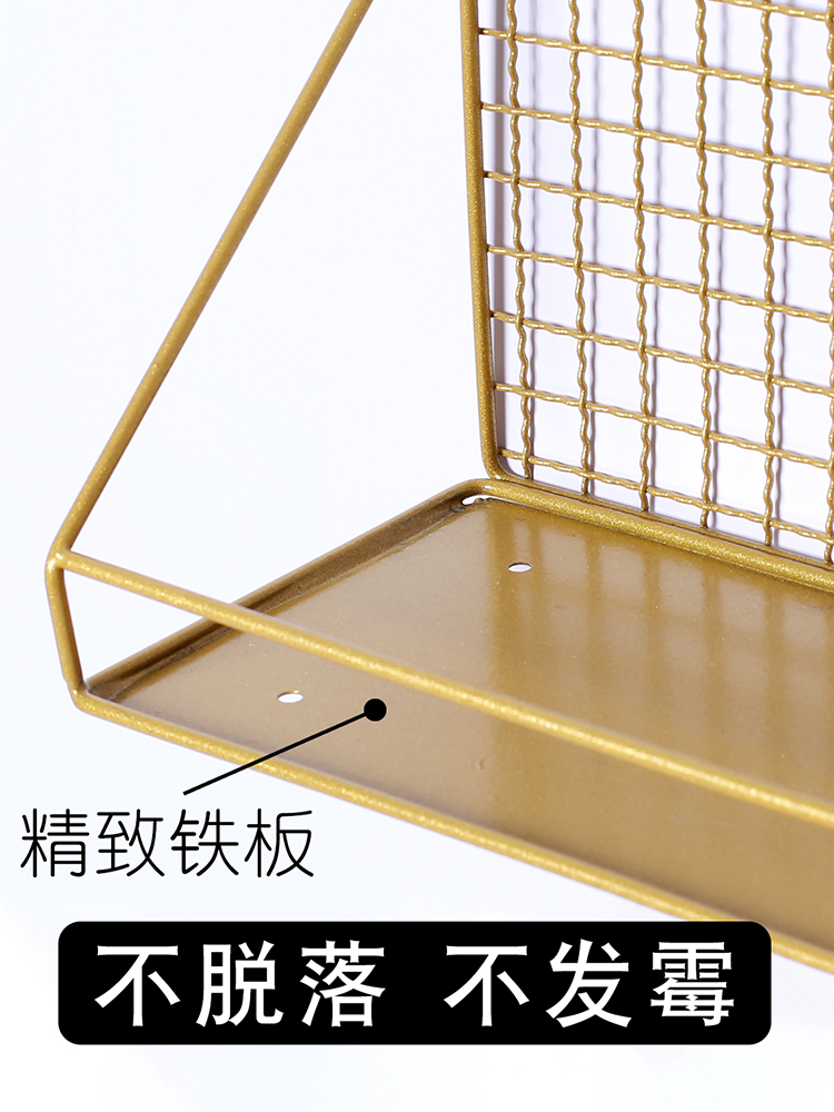 Wall shelf Punch-free wall-mounted Wrought iron bedroom bed head wall hanging basket Kitchen powder room wall storage shelf