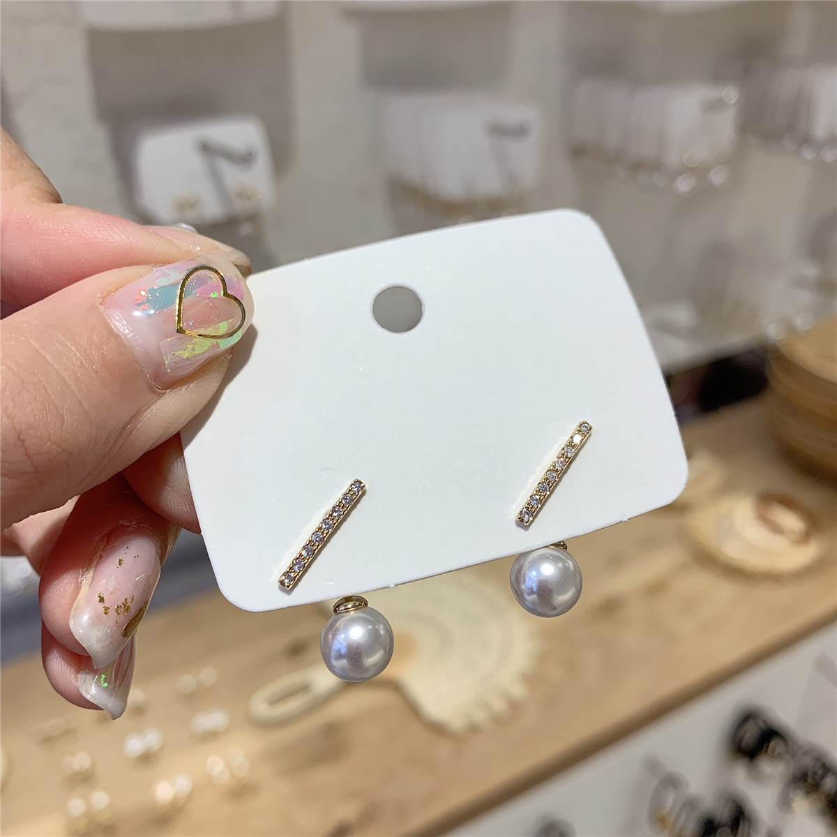 South Korea's Dongdaemun simple rhinestone earrings small word pearl sterling silver earrings all-match temperament earrings girl earrings