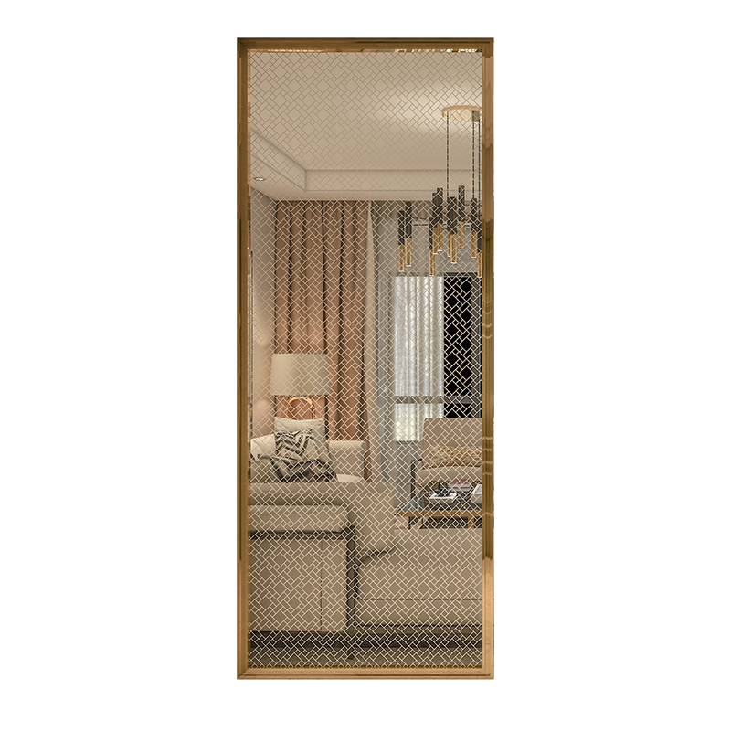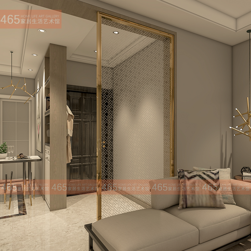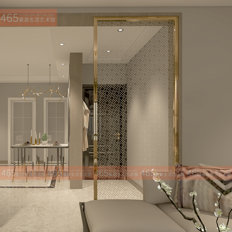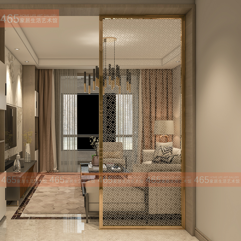 New Chinese light luxury screen custom modern entrance partition art glass custom living room stainless steel wire glass