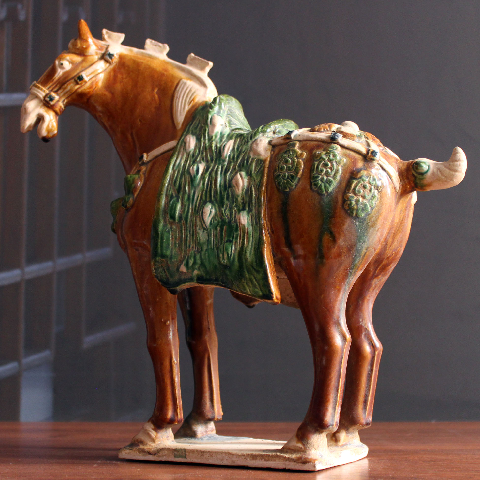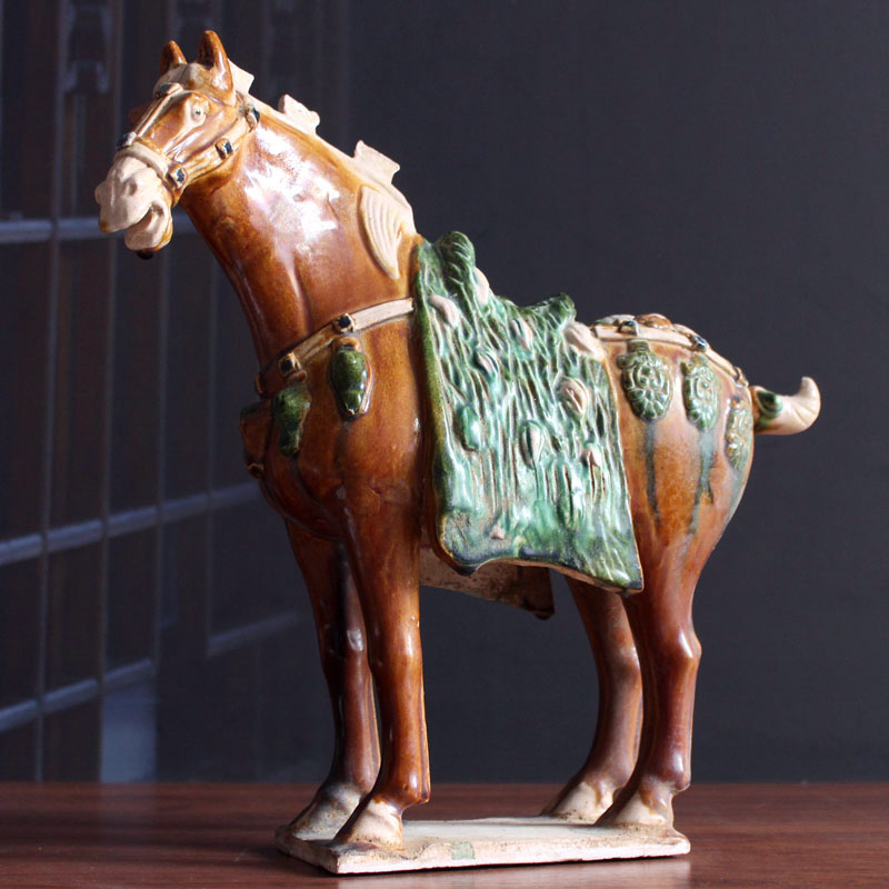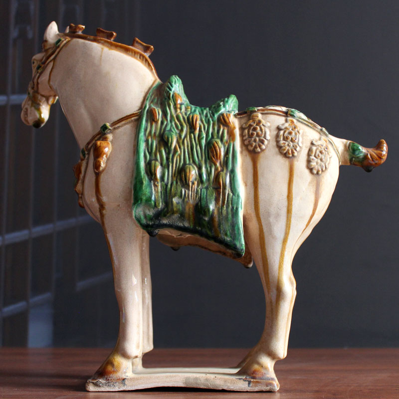 Ceramic Horse Pendulum Replica Antique Three Flowers Horse Craft Gift Hem Accessories Collection Ancient Play Town Residence Don Sancai Caicai Caicai Business About 52cm High