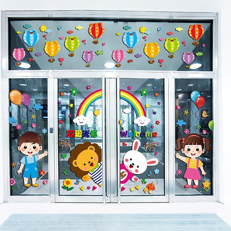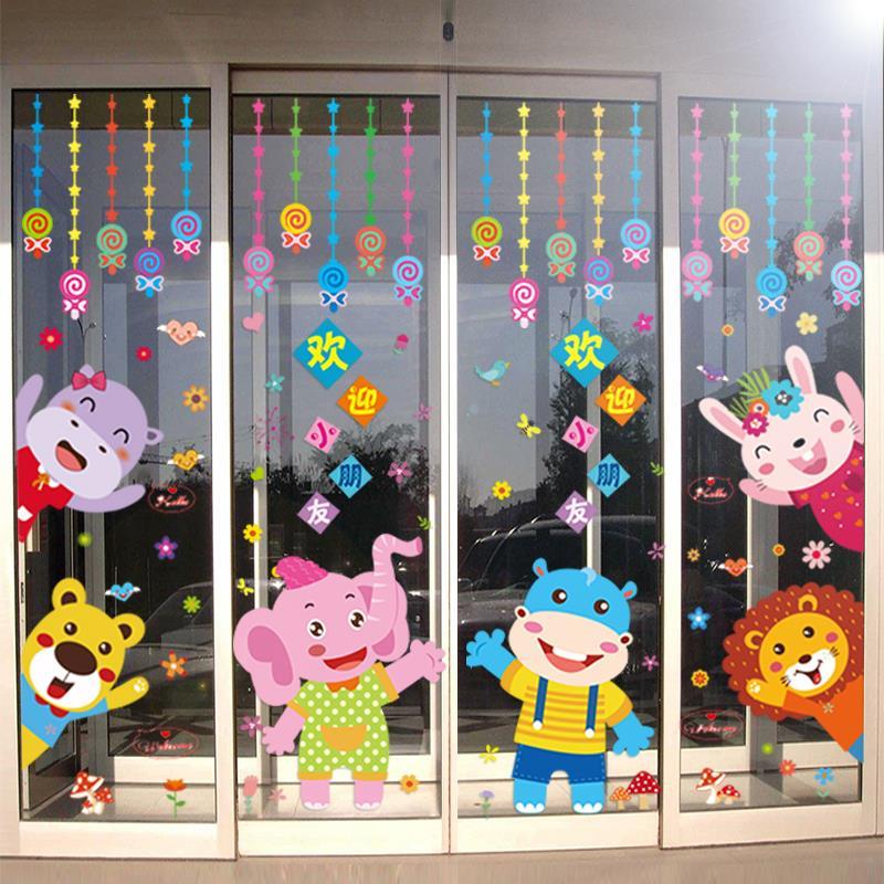 Orange lotus root color peacock blue lemon yellow watermelon red emerald green color white rainbow door glass stickers balloon single boy door stickers balloon single girl door stickers monkey baby elephant stickers welcome children smiling face cartoon balloon movement