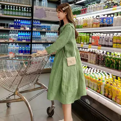 Cotton linen dress pregnant women summer dress large size hipster skirt doll collar summer autumn dress long tide mom fashion