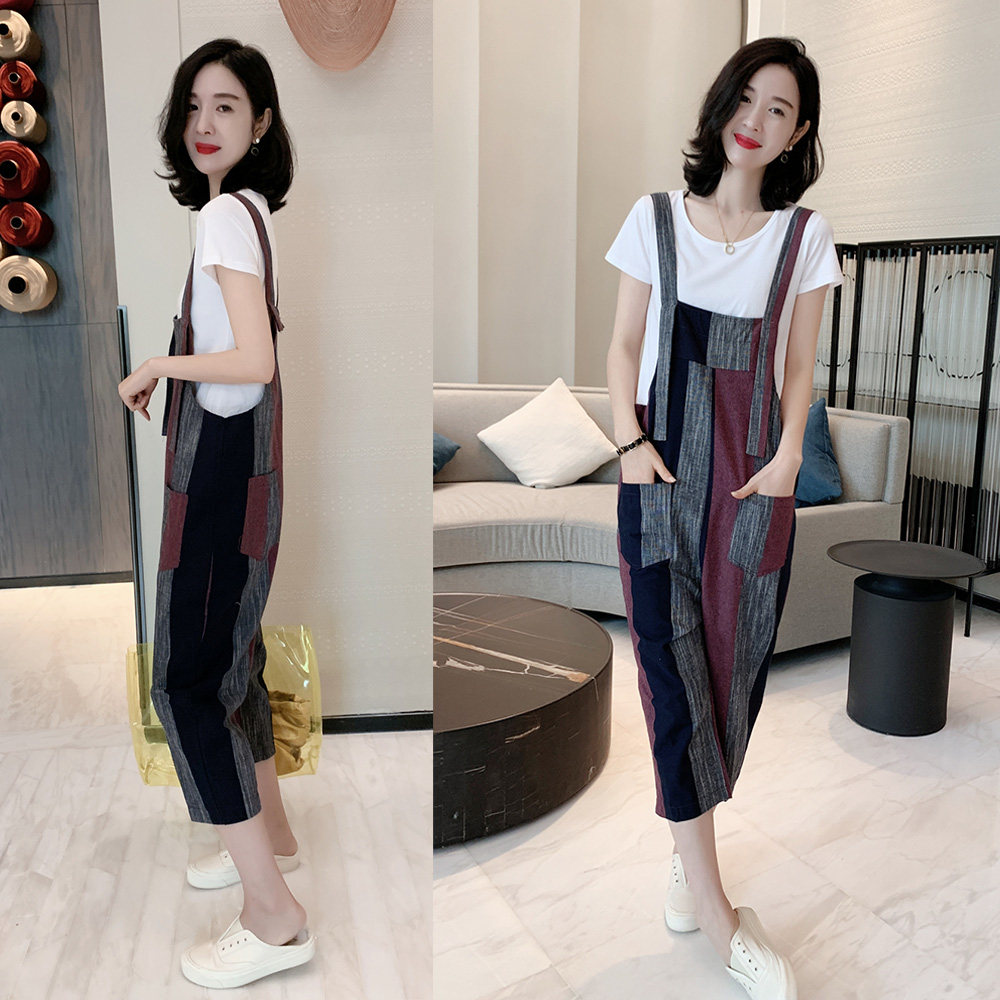 Strap pants suit women summer 2023 new European station European thin thin two - piece set seven - point combine pants